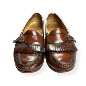 Cole Haan Loafers Mens 8.5 Shoes Kiltie Buckle Classic Brown Leather Dress Strap