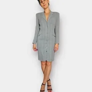 Vintage 90s Tahari Gray Black Striped Blazer Dress