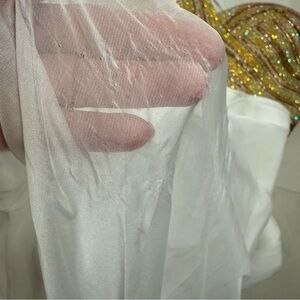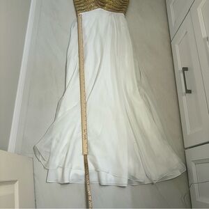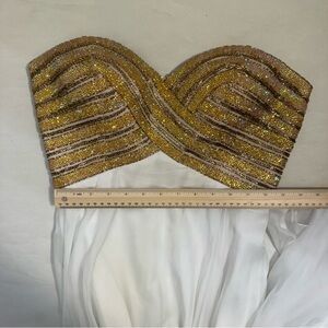 Madison James Strapless Embellished Chiffon Gown • Size 6 • Ivory/Gold