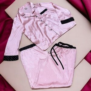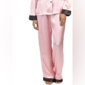 In Bloom by Jonquil S Satin full length Pajama Pants Set Pink with black polka dots | Sz XL