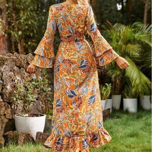 WESTERN PLANTS PATTERN MAXI DRESS