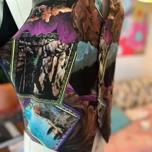 Black and multi-coloured vintage Atlantic Connection vest with a western vibe - size S but probably men's cause would fit M/L women's.