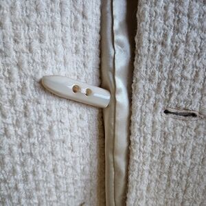 🐰Elegant NWOT cream cape featuring luxurious faux fur trim and large faux ivory button details.