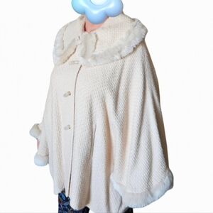 NWOT Elegant Cream Cape with Faux Fur Trim 🐆✨️