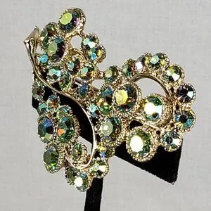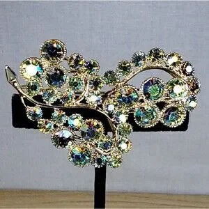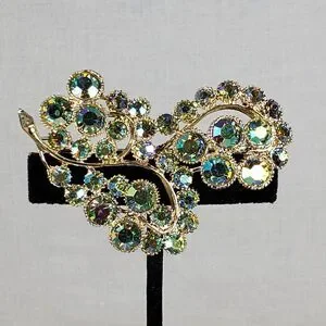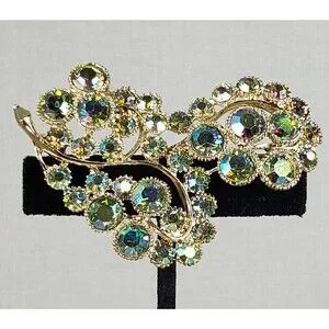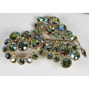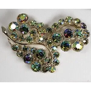 Vintage 1950's Aurora Borealis Iridescent Blues, Greens, Purples Crystal Brooch
