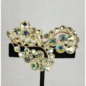 Vintage 1950's Aurora Borealis Iridescent Blues, Greens, Purples Crystal Pin Brooch