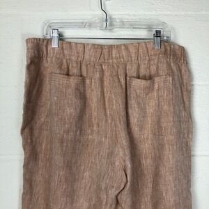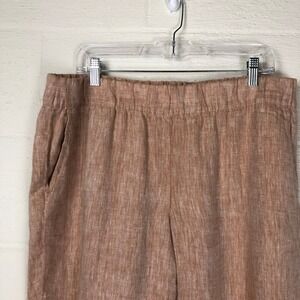 pureJill Linen Pull On Elastic Waist Wide Leg Pants Size LP Tan Vacation Resort