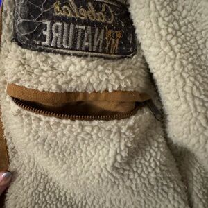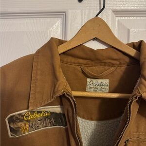 Cabela's jacket with embroidered logo. Cozy lining inside. Features zip closure, 3 external pockets, and 1 internal pocket. Size is not listed but fits like a Men’s medium. Very gently worn, no holes, stains, or flaws.