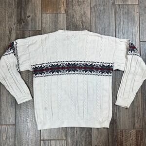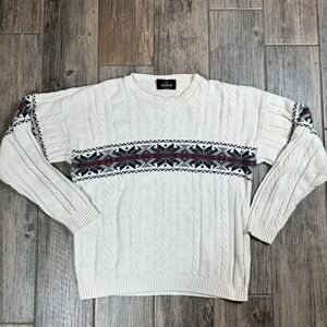 Keywords: RedHead, sweater, mens, cream, snowflake, fair isle, cable knit, USA made, vintage, retro, large, long sleeve, knitwear, crew neck