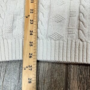 Cream RedHead sweater, a stylish and comfortable addition to your wardrobe. This sweater features a classic crew neck and a distinctive fair isle snowflake pattern across the chest and shoulders. The cable knit design adds texture and warmth, while the overall construction speaks to quality and durability. Made in the USA, this sweater is a timeless piece that offers both style and comfort.