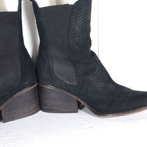 Free People Women's Benson US6,5 EU37 Black Suede Snakeskin Pull On Chelsea Boots.
