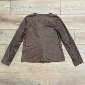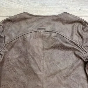 Brown textured microfiber faux leather draped open front cardigan by California Moonrise. A great easy wear lightweight jacket that's perfect for layering. In excellent condition, Size Small S