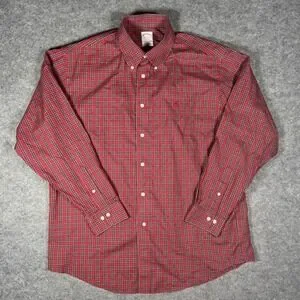 Brooks Brothers Madison Shirt Mens Large Red Plaid Supima Cotton Non-Iron Large