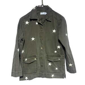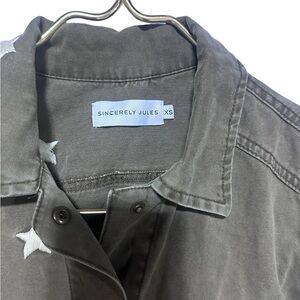 incerely Jules Military Vintage Look Distressed Snap Front Jacket Shirt XS made to look like vintage worn military. Has been worn and washed still fabulous!