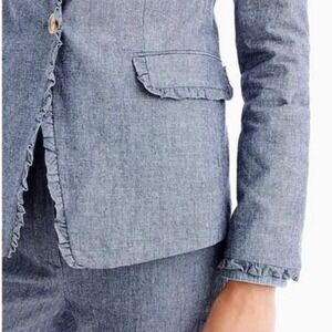 J. Crew Regent Four-Season Chambray Blazer Size 12 Ruffle Trim Striped Lining