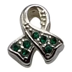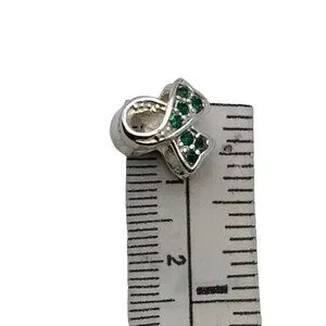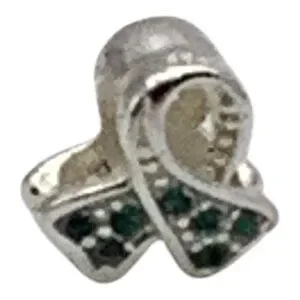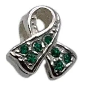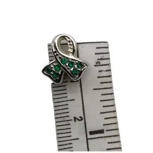 Charmed Craft 925 Sterling Silver Ribbon Pendant Green Crystals Cancer Awareness