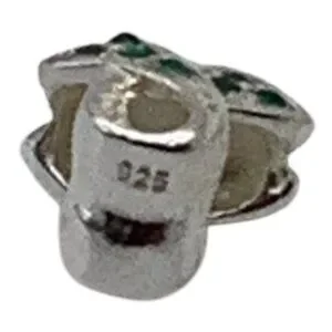 A finely crafted sterling silver ribbon pendant adorned with green crystals, designed for elegance and durability. Suitable for various jewelry projects or as a meaningful gift.