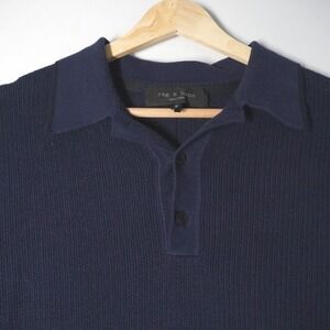 Rag Bone Men Navy Blue Ribbed Knit Short Sleeve Polo Shirt Size M Preppy Europe