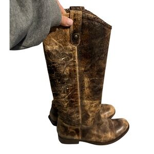 NWT Frye Distressed Leather Heeled Boots - Brown