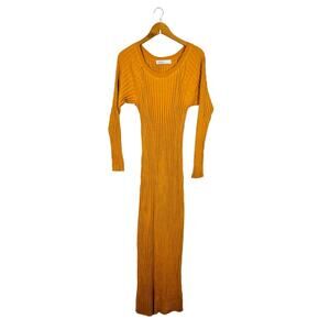 Free People Beach Walk About Ribbed Maxi Dress Size Small Cotton Mustard Yellow