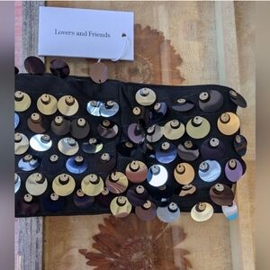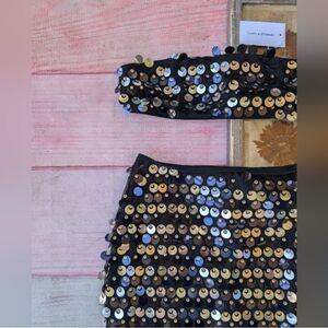 NWT Lovers + Friends Black/Silver Sequin 2 Pc Skirt Set Bandeau Top Maxi Skirt M