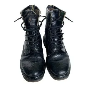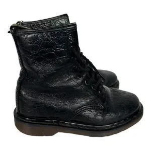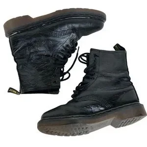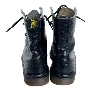 These super cool vintage 90’s boots from Dr. Marten feature black croc embossed leather, 8 eyelets and signature rubber soles.