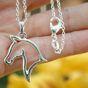 Beautiful Silver Horse Head Necklace Handmade with Love ~ Sterling silver plated horse head charm measures 1" tall