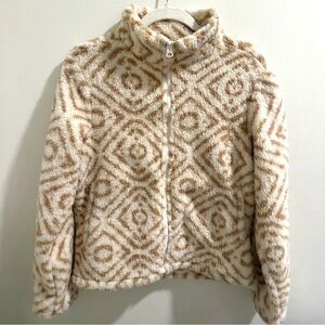 NWT Lucky Brand Cream Beige Teddy Geo Zip Jacket – Size XS – – MSRP $169.50