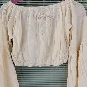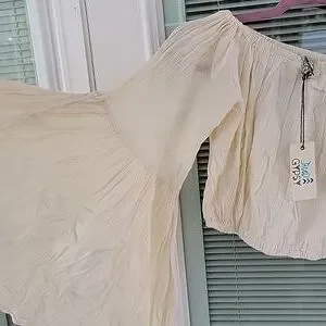 Jaded Gypsy Cream Off-Shoulder Cotton Cropped Top OS Fits Most