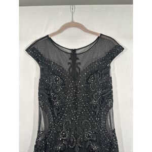 NWT$380 Camille La Vie [ 8 ] Embroidered Illusion Cap Sleeve Mermaid Dress Black