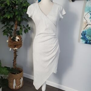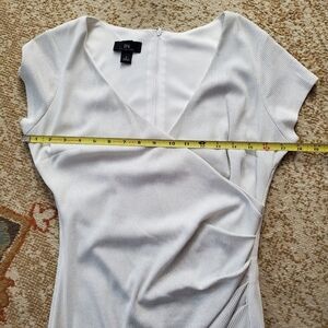 I.N. SAN FRANCISCO Vtg Surplice Faux Wrap Glitter Stripes Ruched Asymmetric 9