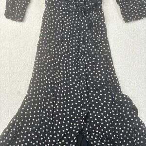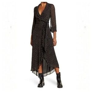 Ganni Georgette Wrap Maxi Dress Women's Size 38 Black White Polka Dot 3/4 Sleeve