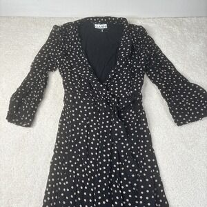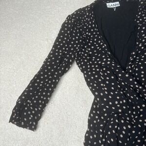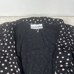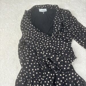 Ganni Georgette Dress Women's Size 38 Black White Polka Dot 3/4 Sleeve Midi Wrap