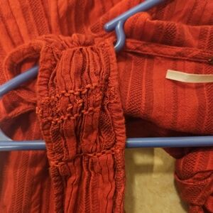 FREE PEOPLE FP women's red striped tie front tank top shirt 10% Linen M Medium