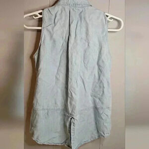 Andrea Jovine Soft Denim Collared Sleeveless Blouse, Size Small. Perfect to pair with shorts, pants, or a skirt. Easily looks great with any pattern or solid color.