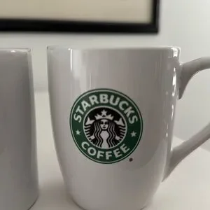Pair Starbucks Basic White with Green and Black Siren Logo on Two Sides 2008