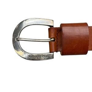 Kenneth Cole Brown Leather Silver Horseshoe Buckle Western Belt 27.5"-31.5"