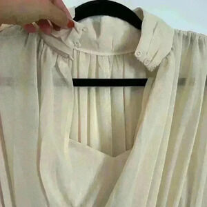 This has never been worn. Very flowy chiffon material. Zip in back closure around neck.