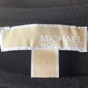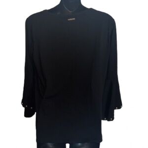 Michael Kors black 3/4 length bell sleeve top with gold metal accents size L