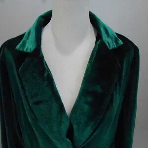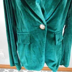 Women's Dark Green Velvet One Button Lapel Collared Blazer Slim Fit Jacket Sz-L?