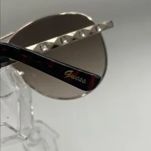 Authentic Guess oversized aviator-style sunglasses in a sleek metal frame with brown gradient lenses. Classic, versatile style that flatters many face shapes.