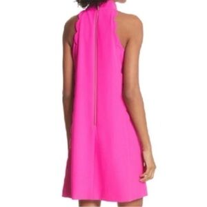 Torrrii hot pink mock neck dress with gold zipper.