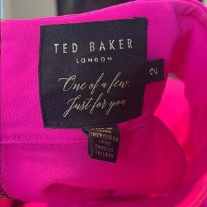 Ted Baker Fuchsia/Hot Pink Scalloped High Neck Scalloped Mini Dress Sz 2 EUC