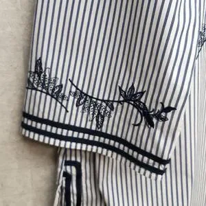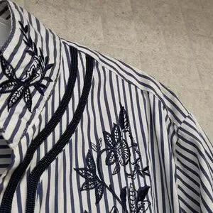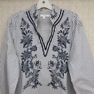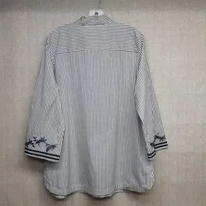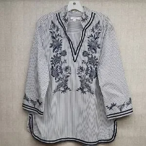 Chico's Navy and White Embroidered Striped Tunic Blouse
