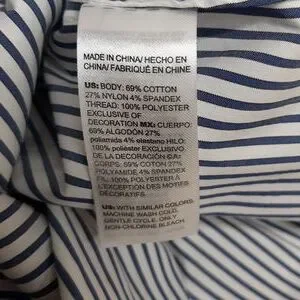 See photos for fabric content and care instructions