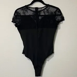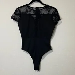 Women’s Black Lace Bodysuit Sexy See Through Top