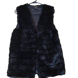 Eyeful Black Faux Fur Women's M/L Vest Lined Hook Eye Closure Soft *READ*
