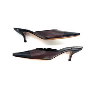 Vintage Chanel Karl Lagerfeld Era Bow CC Logo Cap Toe Kitten Heel Mules 37