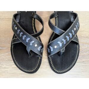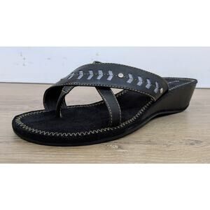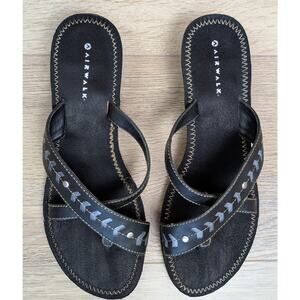 Airwalk Petey Sandal 8.5 Black Wedge Thong Silver Studded Comfort Padded Classic