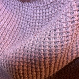 The prettiest soft mauve / blush tone in a chunky textured knit. Perfect for that effortless cozy aesthetic.